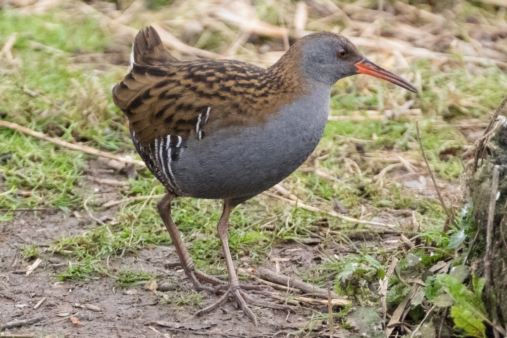 The Water Rail is really very striking, with the upper parts superbly camouflaged for foraging in reedbeds. This video has a bird foraging, and calling or “sharming” as it is known according to the BTO. The Wikipedia article cited at the top of this post is a recommended read: it is a good one.