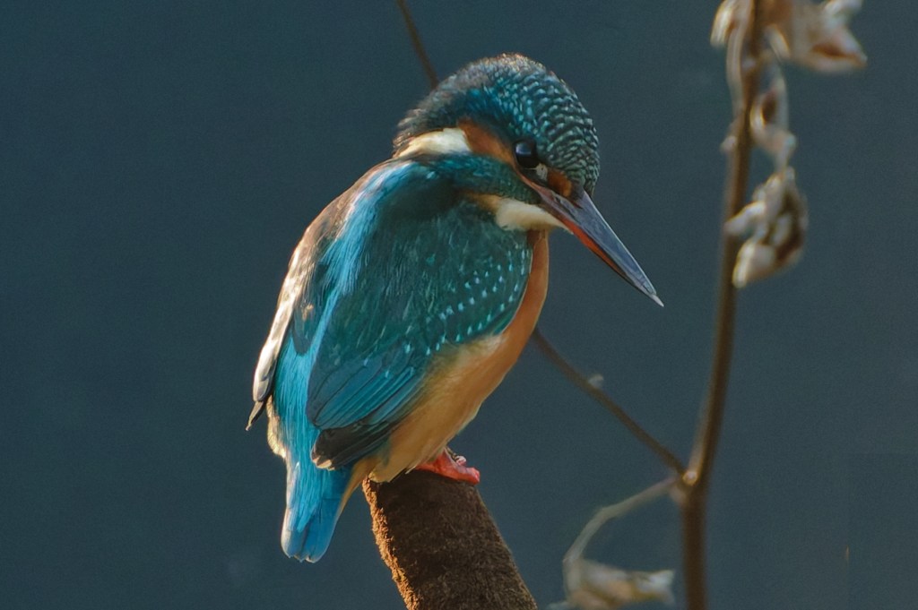Then something rather wonderful happened; a female Kingfisher visited, and stayed for quite a long time. These are Backwoodsman’s best images of this species; good light striking the birds really brings the semi-iridescence to life. The bird visited a number of perches; Backwoodsman likes the use it made of the Great Reedmace.