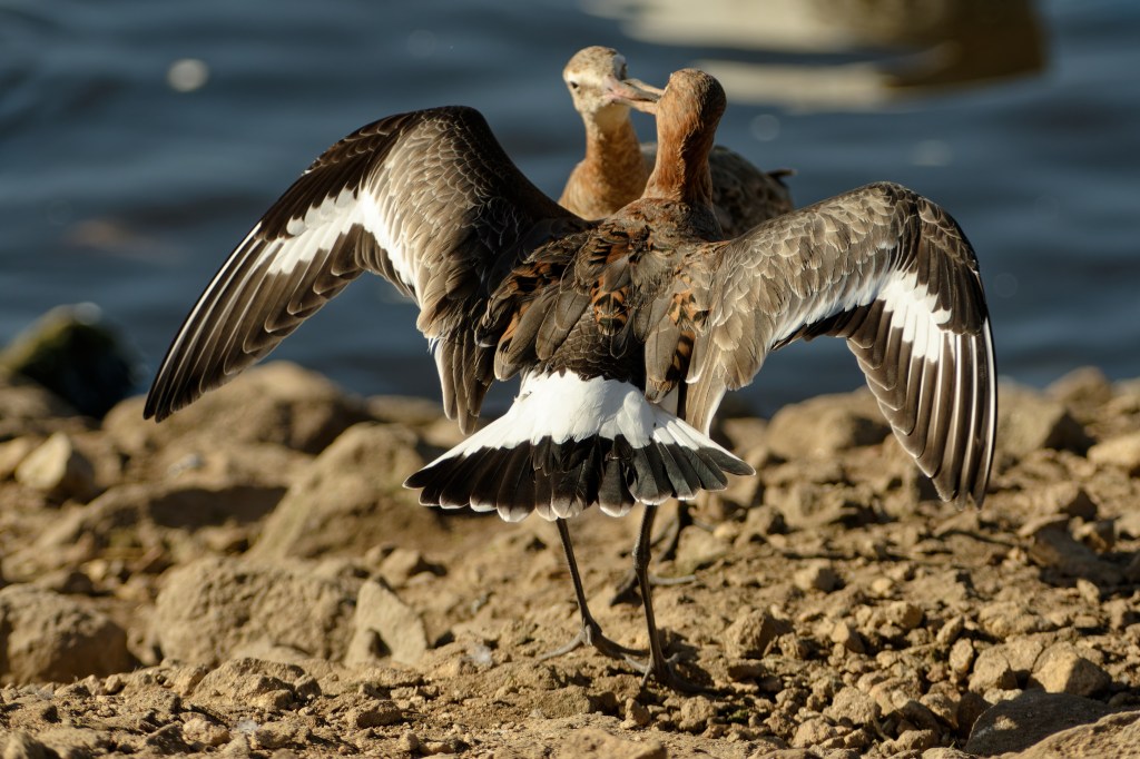 It was surprising to see the precision instrument that is the Godwit bill used in this way. Backwoodsman was also surprised to see the extent of the flexibility of the Godwit neck, which appears to be folded into a right-angle in some of his shots. Wader preening involves a range of contortions but these have mostly involved rotation rather than folding in Backwoodsman’s experience.