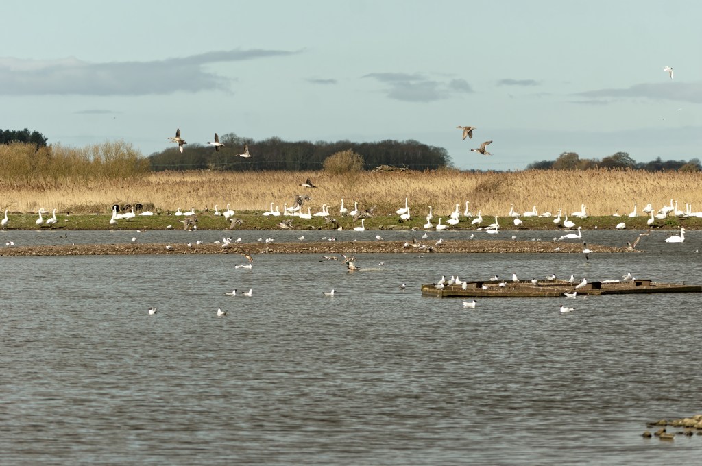 Recently, Backwoodsman was offered, and was very grateful to make, a visit to WWT Martin Mere. The visit took place on March 11th in 2025 – thank you Mother for taking me. We were fortunate to visit before the feeding stopped on March 16th; it seems likely that the five hundred or so Whooper Swans which had wintered on the reserve would probably then head back to Russia, weather permitting. According to social media posts, the numbers of Whoopers were down below three hundred by March 17th and there were just ten on the reserve by March 24th.
