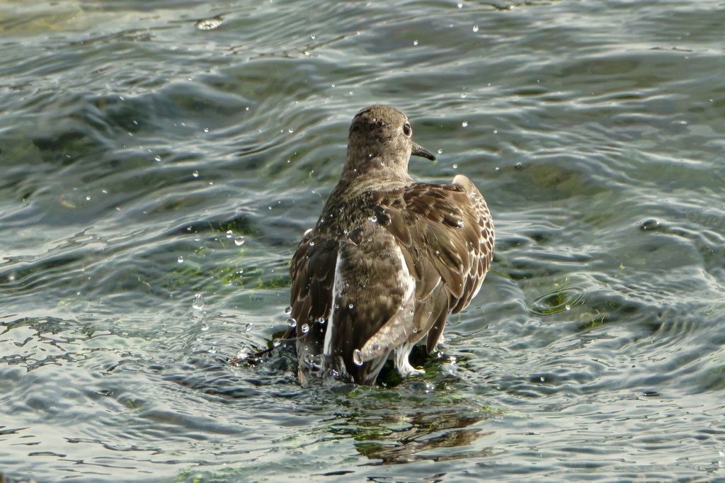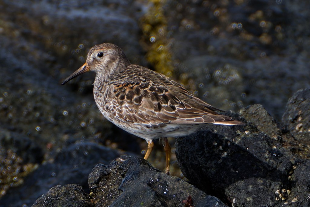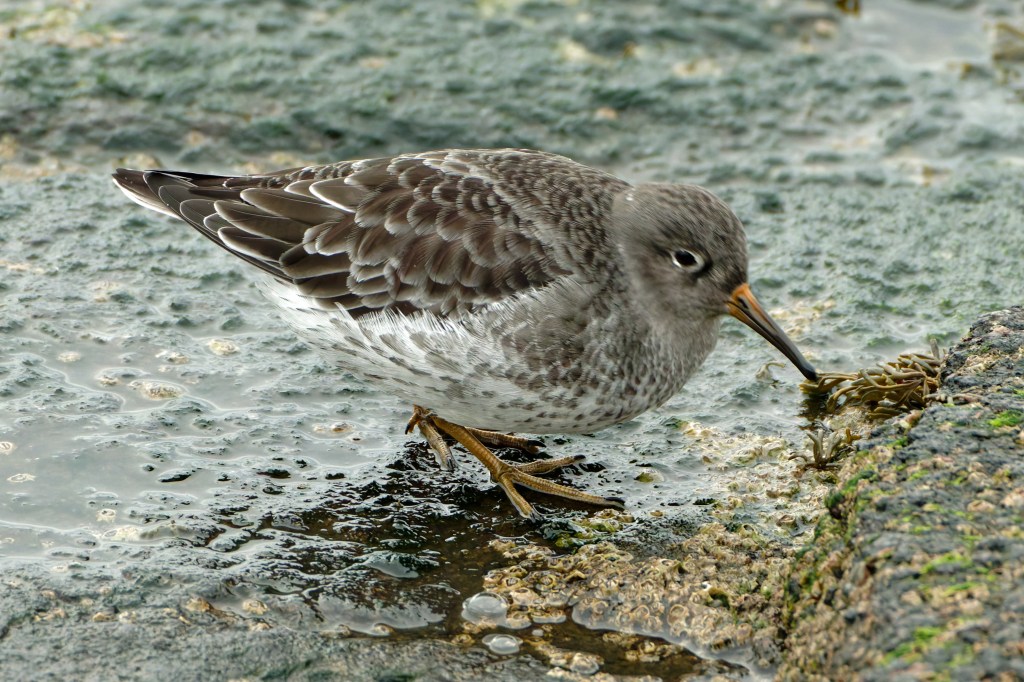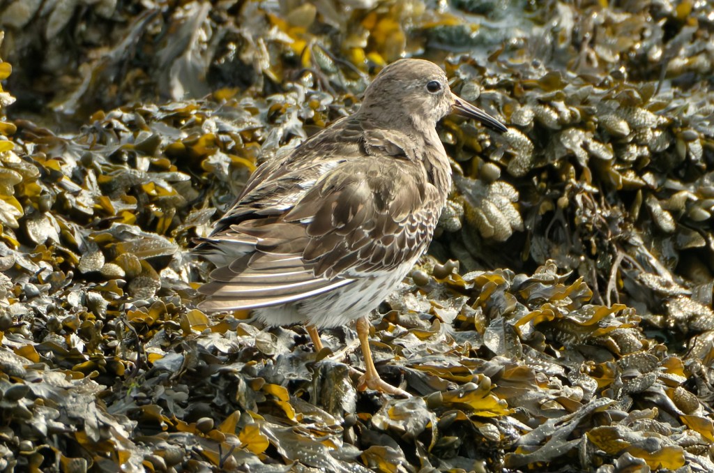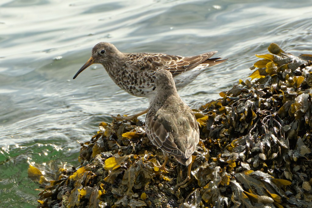 We moved along, finding Turnstones, and then, oh joy, Purple Sandpipers. It was almost high tide by now but the Purple Sands were still foraging.