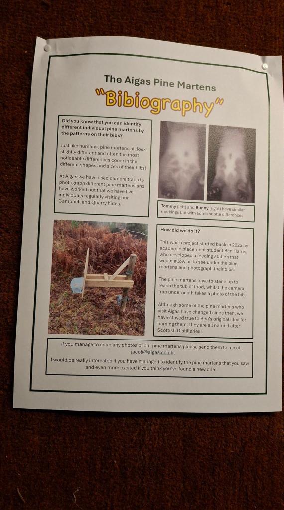 Nevertheless, we were hugely impressed by the Pine Martens and will look forward to seeing them making their way into the West End of Glasgow (ho ho). Though two of our friends did spot one just up the road near Milngavie quite recently. Watch this space!