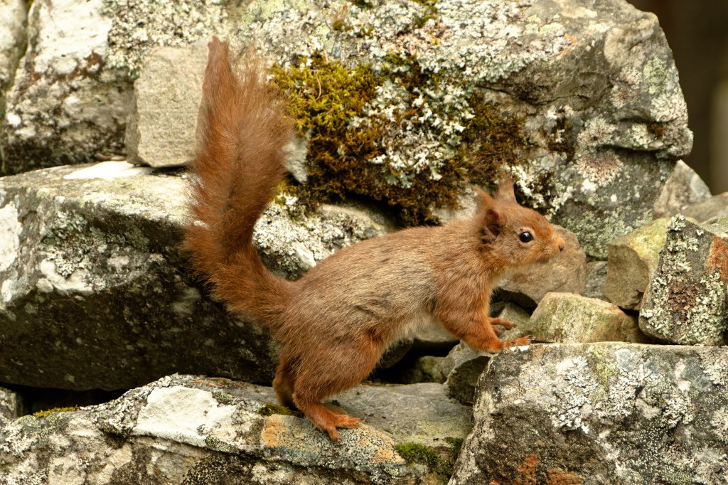 Backwoodsman confesses that he is not entirely immune to the charms of Grey Squirrels – they have a way about them. There is a place in Kelvingrove Park where students from East Asia go to feed Grey Squirrels and take photographs; the squirrels attending this site know how to put a best paw forward. The whole narrative of invasive species versus native species is a slippery one, but it is disagreeable to think of Red Squirrels being driven entirely from large swathes of territory and infected with viral disease. Fortunately, Reds are being looked after and may be said to be on the march (or possibly bound); one even turned up in Bishopbriggs, just a few miles from where we stay, last summer.