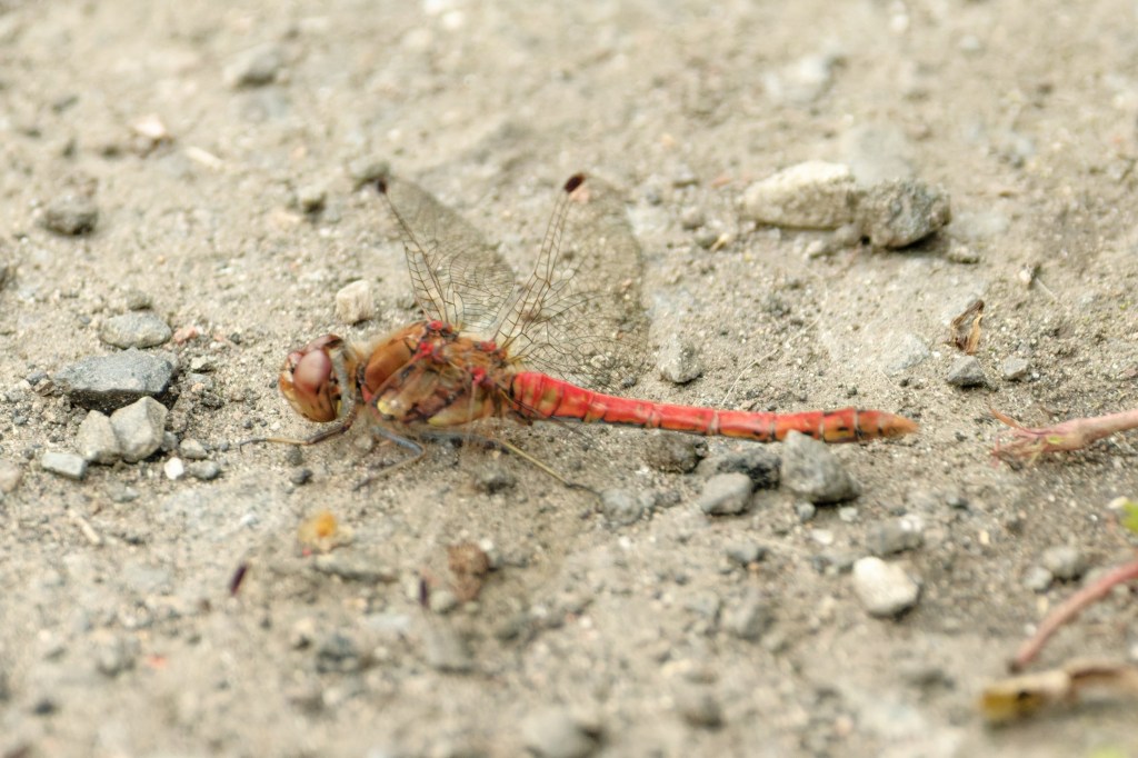 A search of Backwoodsman’s archives revealed images of Common Darters, a species native to the UK. Red-veined Darters are visitors – better to call them this rather than migrants, in case some yobs with flags show up and try to burn down the places in which they stay.
