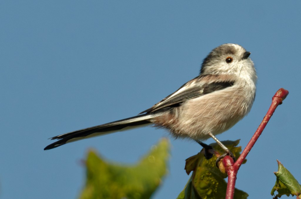 A small flock of Long-tailed Tits was enjoying the sunshine. They were unusually still in the tops of the Lime saplings; perhaps they were warming their tiny bones after a cold night.