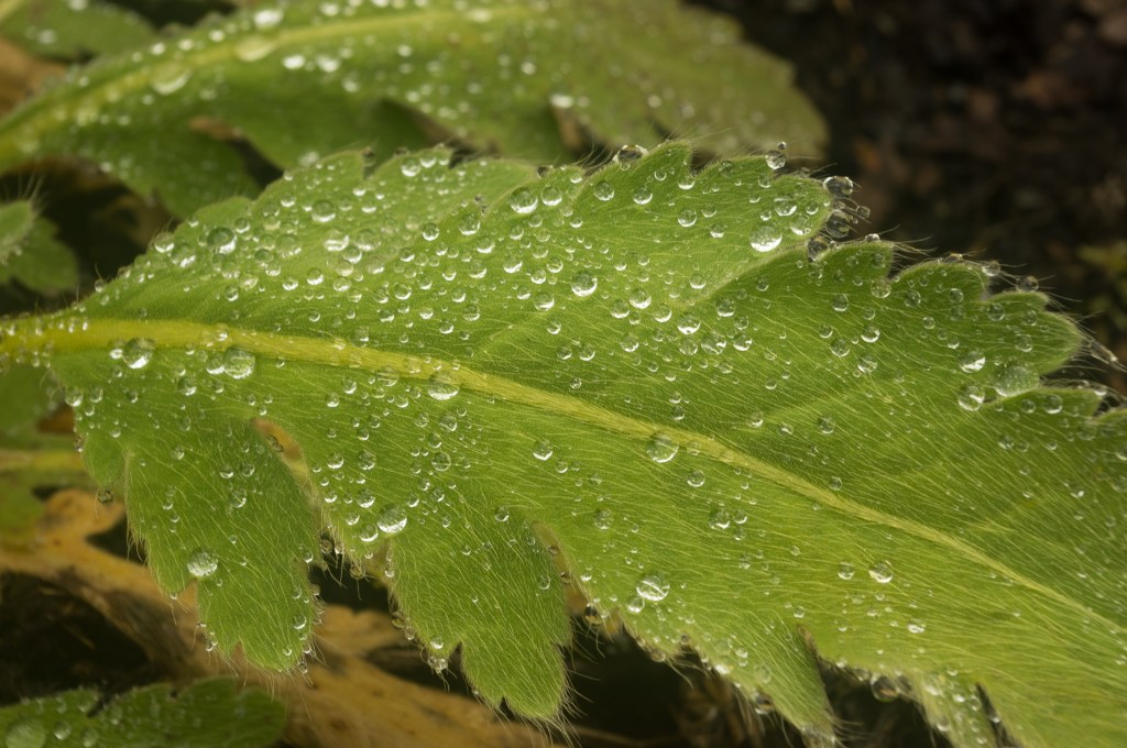 And then there are the serendipities where the gardener might be intending to clear some self-sets (but hasn’t got there yet) or has decided to let a wild thing prosper, or where a heavy dew or a shower has transformed a leaf into a bejewelled spectacle. I’ve seen a leaf like this before – I think it might be Meconopsis betonicifolia, a big favourite.