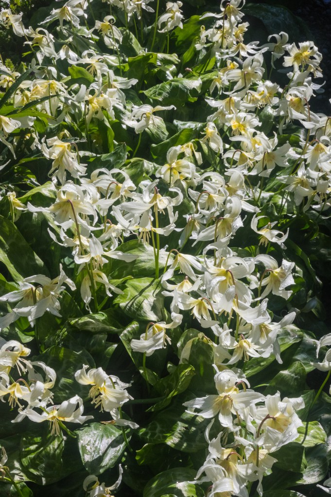 A set piece garden like Glenarn can offer quiet corners in which a different aesthetic prevails. The Erythroniums and Triliums (I’m very fond of both) are still a formal planting but mark a transition into a more modest range of colours and forms.