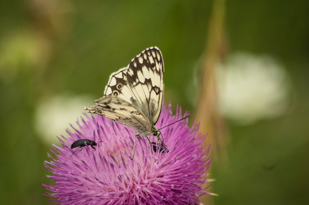 Marbled whites were looking to feed and helpfully chose plants which provided a nice colour contrast. A female Small skipper also chose to sit in a good exposed position for an unusually long time.