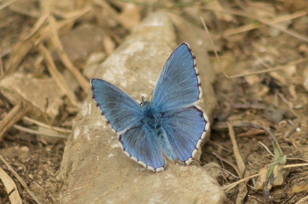 The Karst scenery began when we left the woodland and it was alive with flowering plants, many attended by butterflies. The photography of butterfIies in a hot place is a sure route to a headache and a great way to burn an afternoon with no outcome (Backwoodsman is very keen on getting an outcome). There were Clouded yellows on the wing but they were so fast and always seemed to want to be somewhere else. Some individuals seemed happy to sit. I found a male Adonis blue (rather than a Common blue) – species assignments are difficult to make on the basis of colour (sky blue versus violet blue in this case) but the UK Butterflies site drew my attention to the Chequered fringe of the wing of the male Adonis (the Common’s fringe is plain). I looked hard and in vain for the chocolate-brown female Adonis.