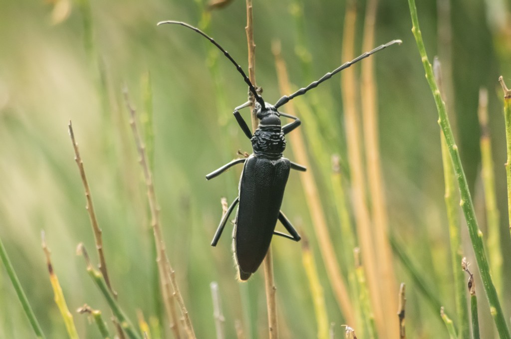 While the species seems to be quite vulnerable in wild woodland (and useful, its tunnelling larvae open up old trees to a wider range of species), this longhorn can be a bit of a pest in Holm oak trees in urban environments. I always hope to come across some really outrageous beetles in the wild and this one will do very nicely. Those antennae! Longhorns use them to detect kairomones, signalling molecules with a wide range of functions.