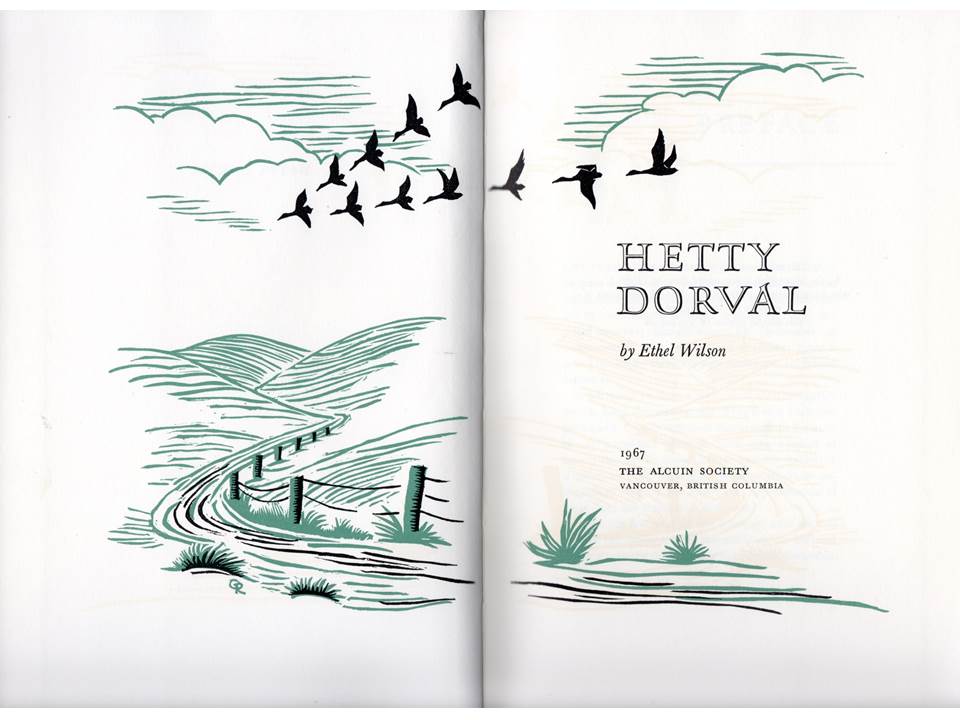 Looking for a kindred spirit, I groped blindly towards the shelf of Canadian fiction and Faye guided my hand towards a beautiful edition of Ethel Wilson’s 1947 novel Hetty Dorval, illustrated with lino-block engravings by Gus Rueter. She showed me the frontispiece , and then took me to page thirty eight where the two main characters, Frankie and Mrs Dorval are riding out from Lytton, when: