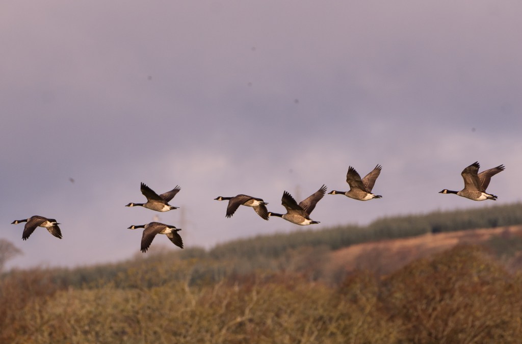I have always assumed that the geese I see from the train are heading in for the winter; the Caerlaverock and Mersehead reserves on the Solway Firth advertise good views of wintering geese. I had also assumed that some of them were Canada Geese, and that Canada Geese came to us from Canada… This jolly map shows the migration of Canada Geese in North America. I have failed to find anything similar for the European populations. The British Trust for Ornithology was helpful, as usual.