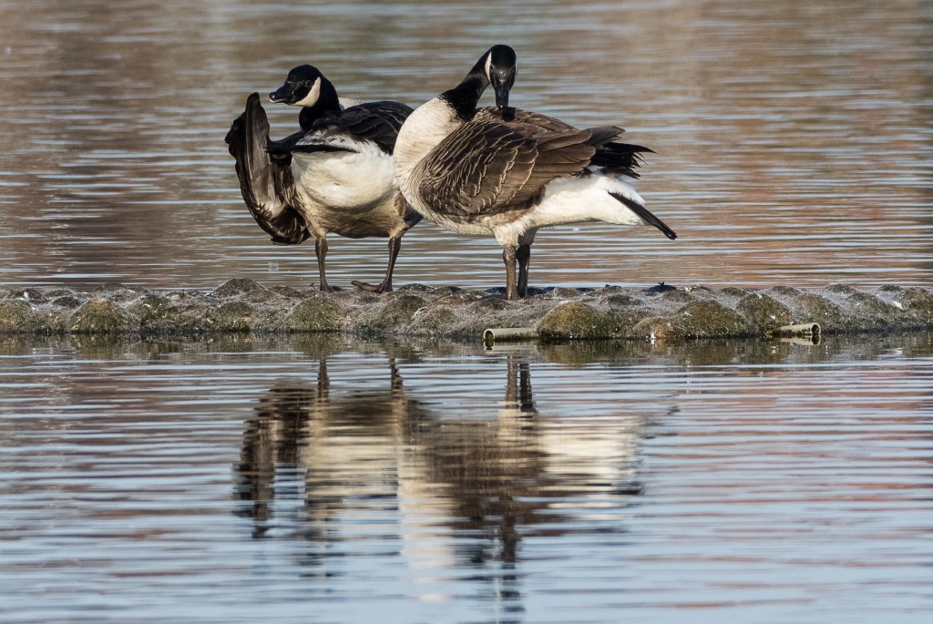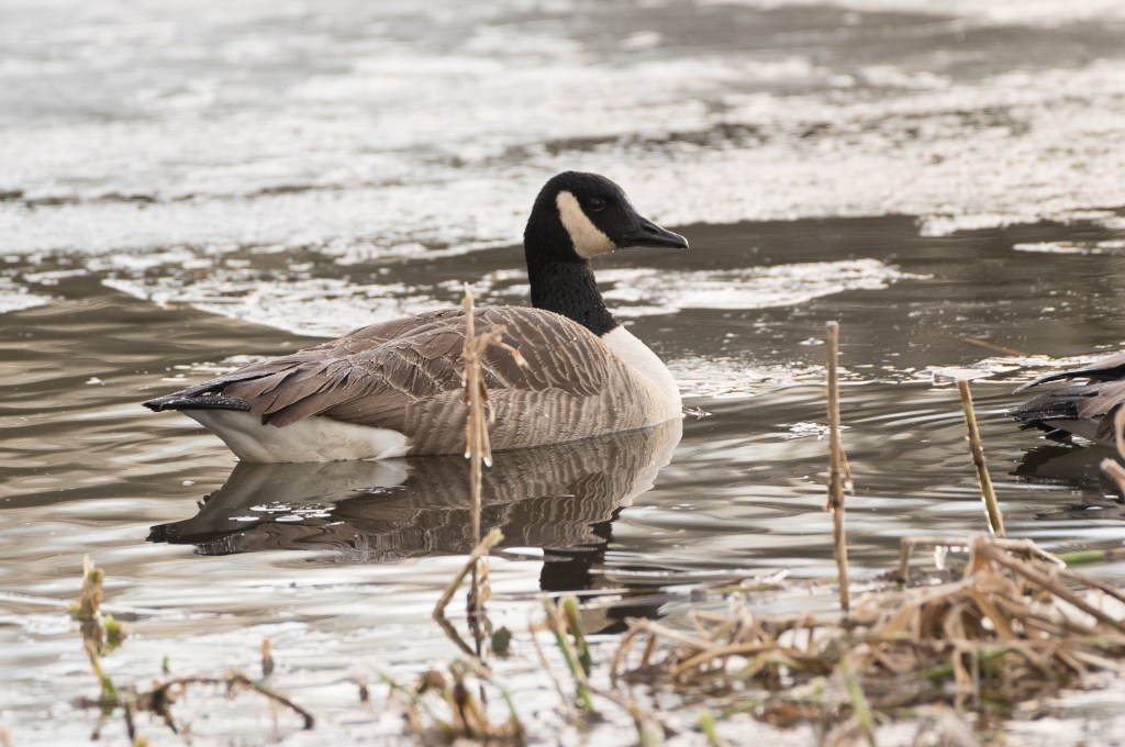 It seems that my train geese are probably other species entirely, and that the Canada Geese which cross my path spend the whole year with us. I have photographed them in many of my usual locations; they are a good size guaranteeing a decent image at relatively long range. Their colouring is very subtle and close examination of the feathers reveals some wonderful textures.
