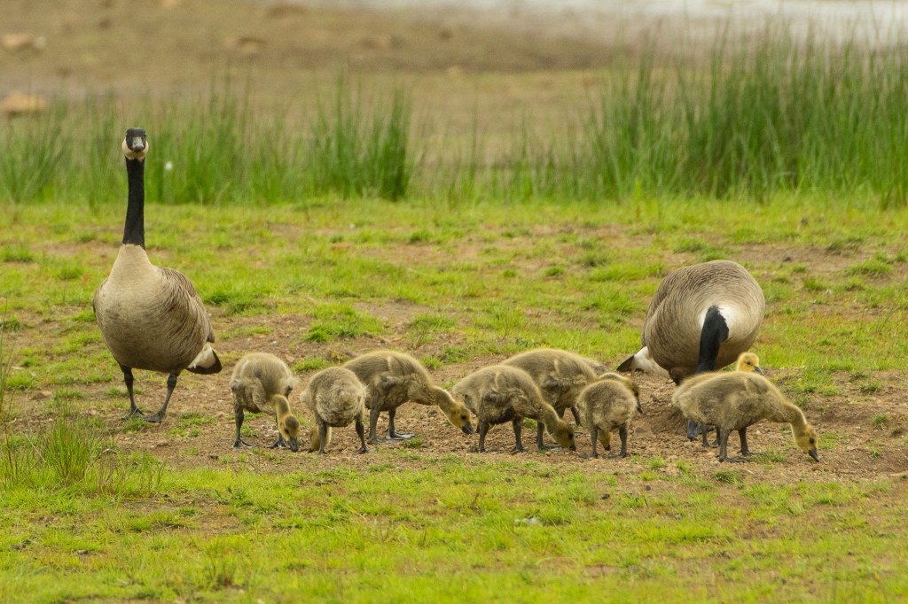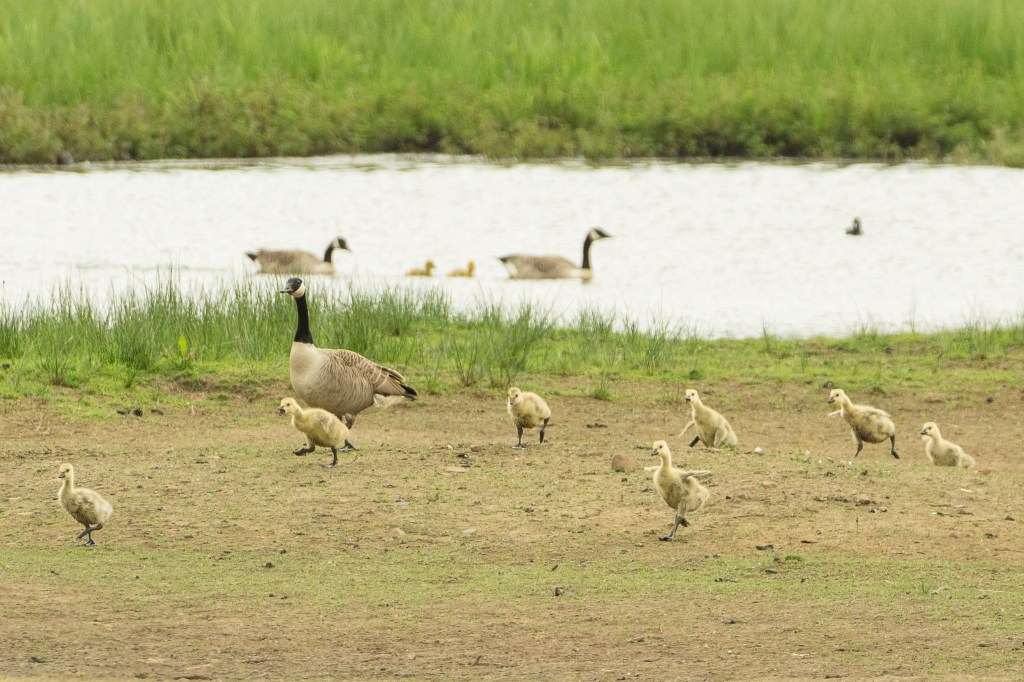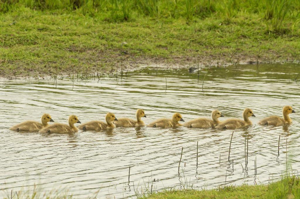 I had missed the really tiny goslings, but it was delightful to see these slightly more mature and robust-looking individuals. The pair of birds I had stayed with had produced eight goslings, an excellent replacement rate even if not all eight survive and breed themselves. Canada Geese are seen as a bit too successful in some areas and licenses to control them can be had. As they are not eating my crops, I can celebrate them with impunity and share Frankie’s exultation at their sight.