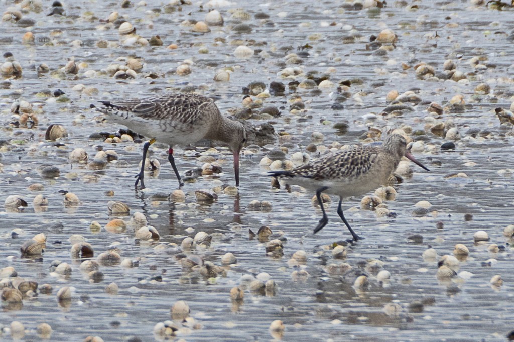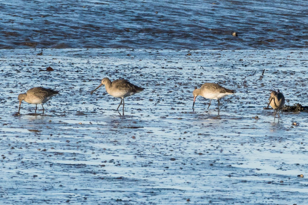 We visited the site in September and November 2018 and saw very large numbers of Knot and Black-tailed Godwits. Most of the photographs from these trips are rotten but three are just worthwhile because they show the numbers of birds, and the black and white tails and wings of Limosa limosa.