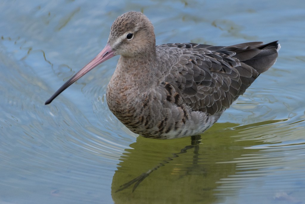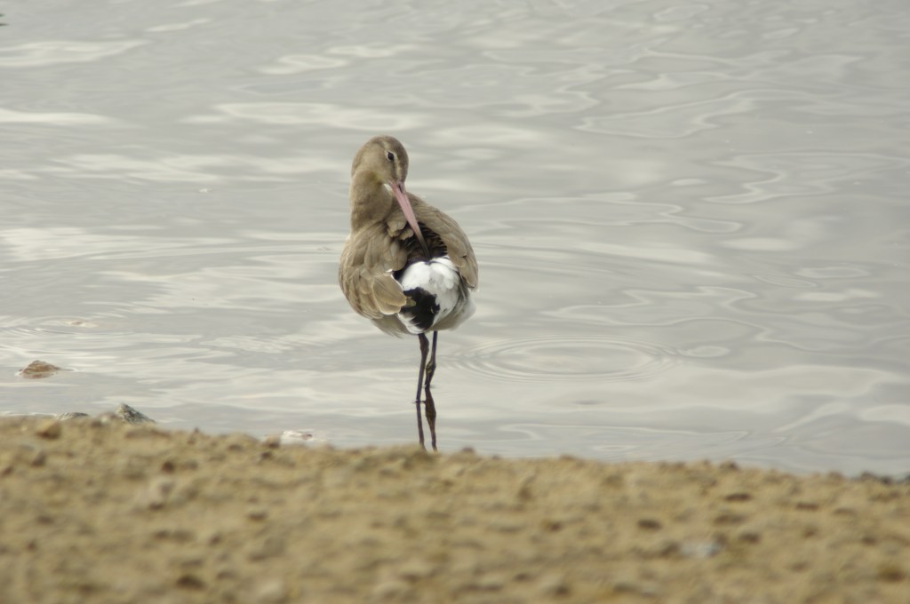 However, there is a trick which Godwits of both species might pull on the observer – it is called rynchokinesis. Professor Richard Chandler has written about this extraordinary business in British Birds (R. Chandler, British Birds, 2002, 95, 395-397): “One’s first experience of a wader deliberately bending its upper mandible is a surprise; at first sight, birds’ bills seem to be such rigid structures. The upper mandible has, in fact, some flexibility, and waders can occasionally be seen exercising this flexibility, no doubt a form of stretching, a comfort action to keep the feeding apparatus in good working order. Cranial kinesis is the ability of birds to move the upper mandible in relation to the skull (Burton 1985). It takes two forms: pro[1]kinesis, in which the entire upper mandible hinges where it is attached to the skull; and rhynchokinesis, where the base of the upper mandible is fixed rigidly to the skull, and bending takes place some distance along the mandible, nearer the tip than the base. In the case of rhynchokinesis, the bone structure of the upper mandible allows the flexibility.” So the upper part of the bill bends slightly upwards – Professor Chandler doesn’t say this but his short paper has some good images. I haven’t even seen this behaviour, never mind photographed it; I will certainly be looking for it in the future.