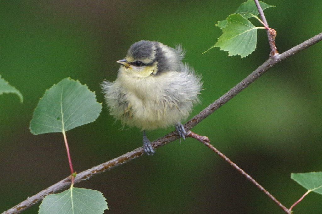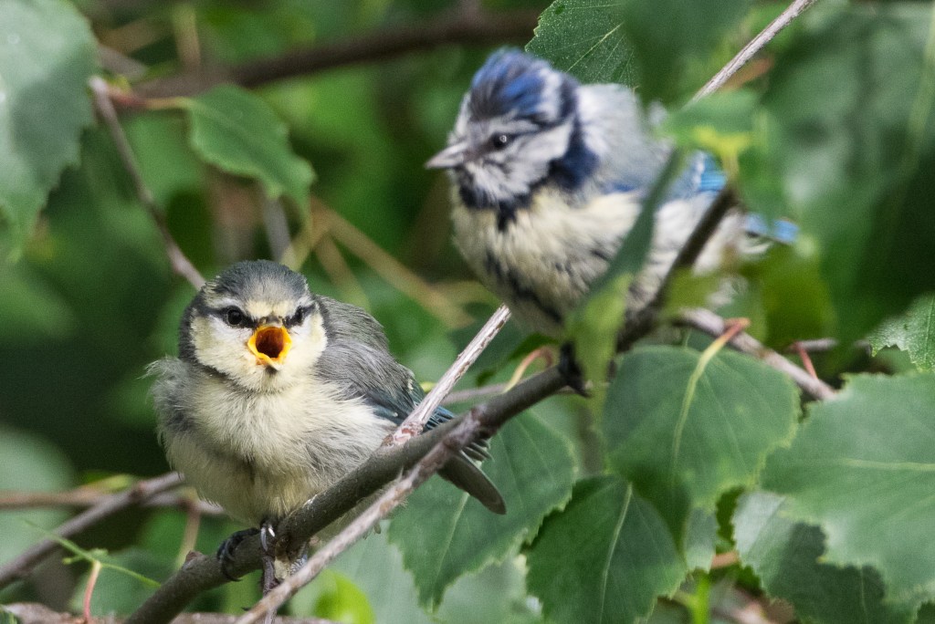Come the early summer, we start to get the fledglings, with the Birch sapling turning into a daytime creche and feeding station. The young become independent rapidly and then the cage feeder becomes very busy. Of the eight young that visit just now, four may make it through to breed next year; if our established pairs survive, next year could be very busy. Backwoodsman hopes so.
