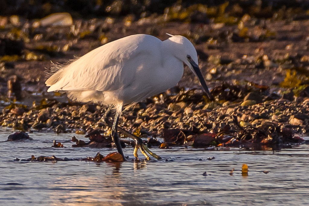 For numbers of birds, Aberlady LNR is Backwoodsman’s top place. We saw a group of five on one summer visit (no photographs, alas) but a September trip allowed some images of Little Egret choreography to be had. These images will not bear much expansion (they are grainy, Backwoodsman made a major ISO error in his excitement) but the elegant gait of the birds is conveyed well.