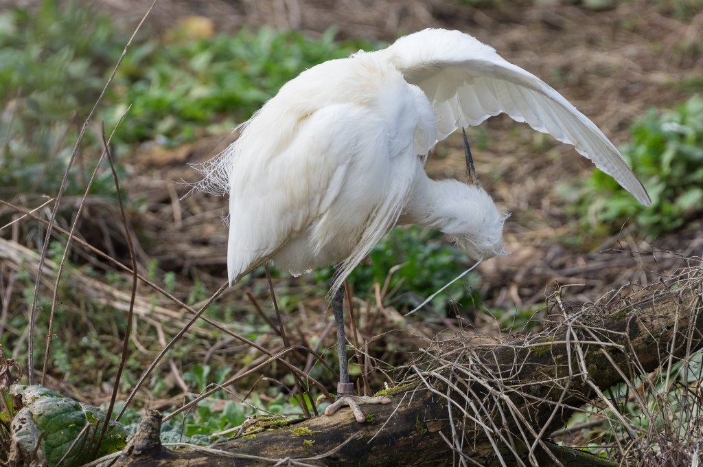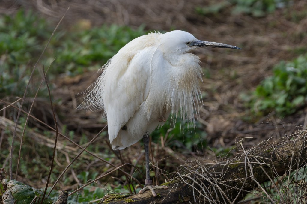 Backwoodsman’s closest approach was had at WWT Slimbridge in the Waterscapes Aviary; there were several Little Egrets in repose. They looked a little bored, and possibly in some degree of moult (they were a little off-white in places) but the herl is striking in these images and the translucence of the flight feathers in the lifted wing is very pleasing.