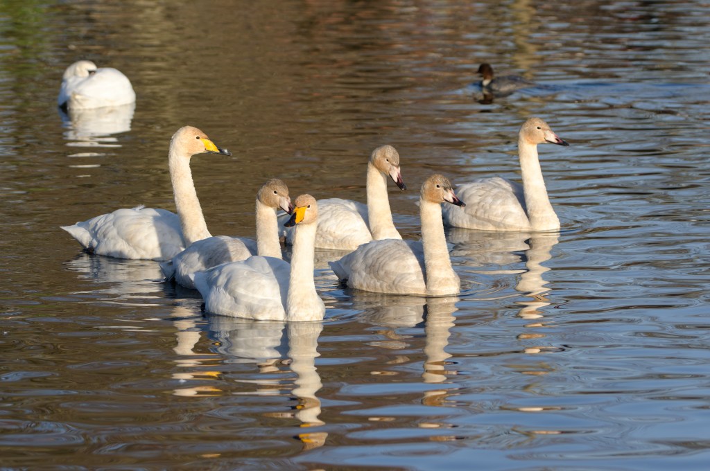 The ice began to slacken its grip nearer the coffee stand where there was a nice family group of Whooper Swans, and some pretty Black-headed Gulls, all basking in warm low-angle winter sunlight.