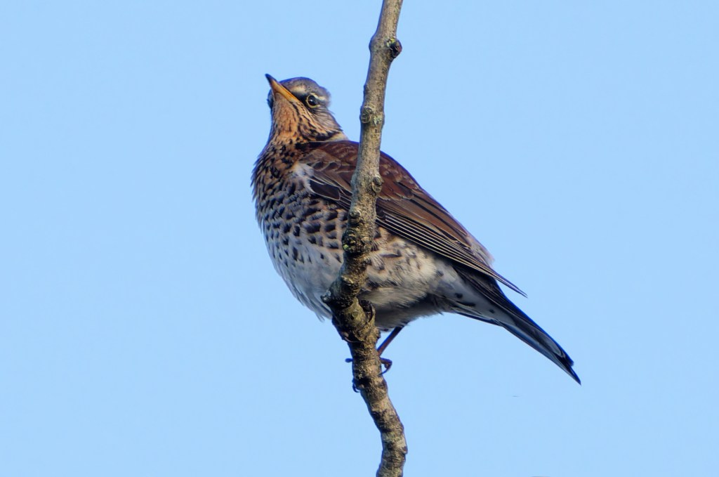 Backwoodsman completed the lap, and was heading back towards Cardowan Moss when he heard a call that he had been hoping to hear. There was a Fieldfare perching in full light and sounds of others from the surrounding area – Backwoodsman’s first sight of these birds this year.