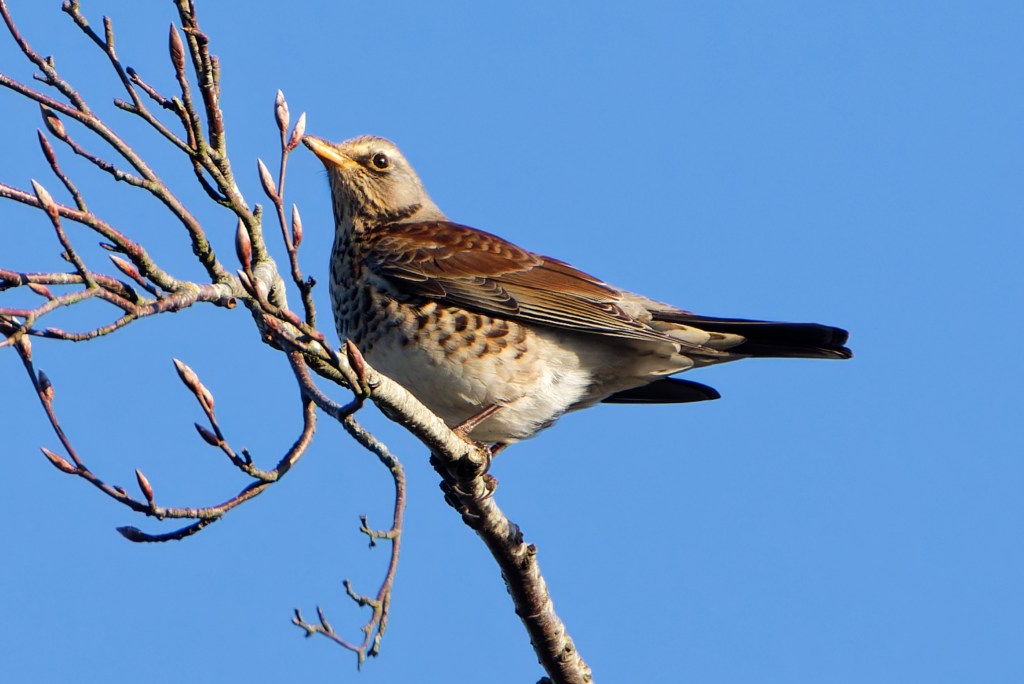 The colours sported by Fieldfares are subtle but glorious. Backwoodsman is particularly taken with the arrow-head markings on the breast; presumably these are the feathers responsible.