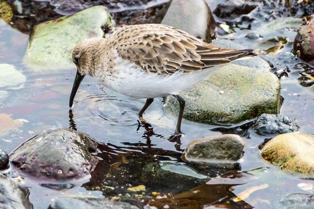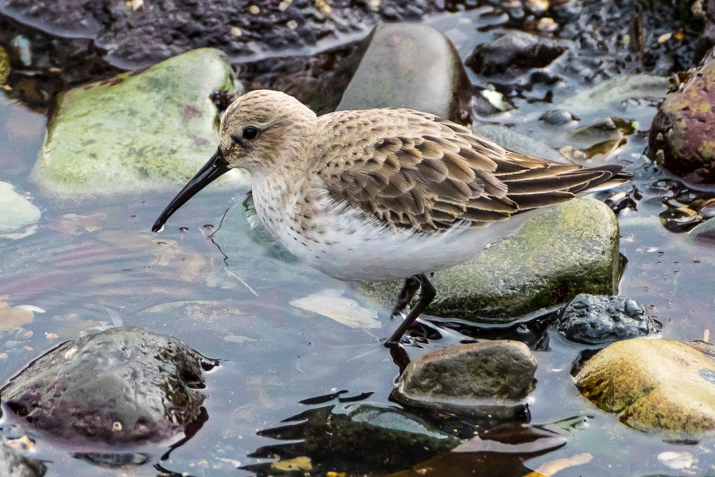 As in the Red Kite post, all today’s images come from a single location – Troon, in Ayrshire. Backwoodsman has seen Dunlin elsewhere on our coastline but Troon has been the most reliable place for a sighting, and has offered the best vantage points. The key feature is represented well in this rather desolate image; given the complete absence of light, Backwoodsman wonders why anyone would bother to capture this image, never mind post it on Flickr. In any case, Backwoodsman would definitely have moved the chair.