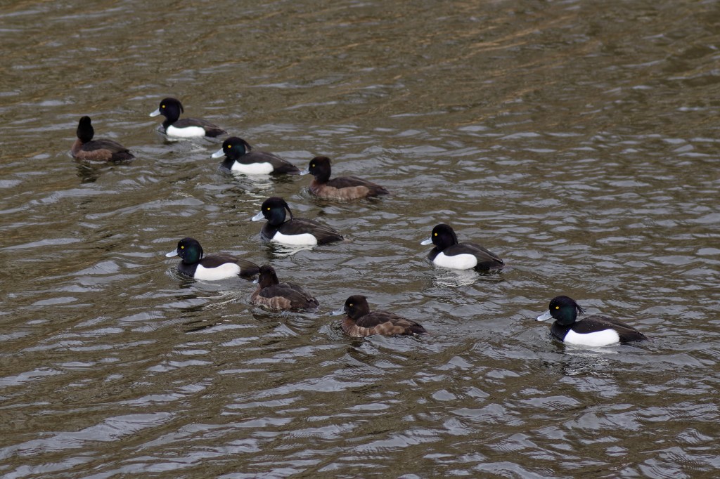 Anyway, it’s been lovely to see the Tufties throughout the winter; the group has dispersed now, possibly to better breeding sites. It would be delightful to see ducklings but the chances are that the local gulls would see them first. Other good places to see Tufties around Glasgow include Hogganfield and Frankfield Lochs, both shallow and weedy bodies of water.