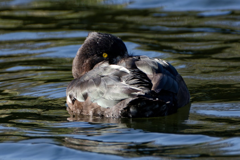 We have other Aythya species in the UK and Backwoodsman has been pleased to find Pochard (A. ferina) on Hogganfield Loch (male then female) and Scaup (A. marila) (male then female) at Slimbridge. Backwoodsman thinks the three species make a presentable bundle. Please enjoy the vermiculated feathers of the drakes and the splendid textures of the ducks.