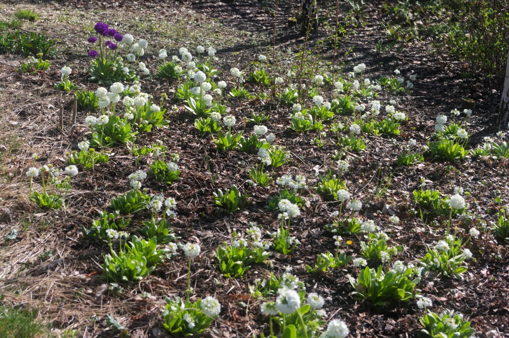It is a fragrant route, what with McGhees Bakery and Biffa Waste Management just across the railway, and usually good for corvids and lots of Starlings. The route turns right to follow Springburn Road, where someone must have had every young offender in Scotland on their knees planting thousands of Primula denticulata. Quite right! As one of Backwoodsman’s academic colleagues in Birmingham used to say, “they can be put to work.”