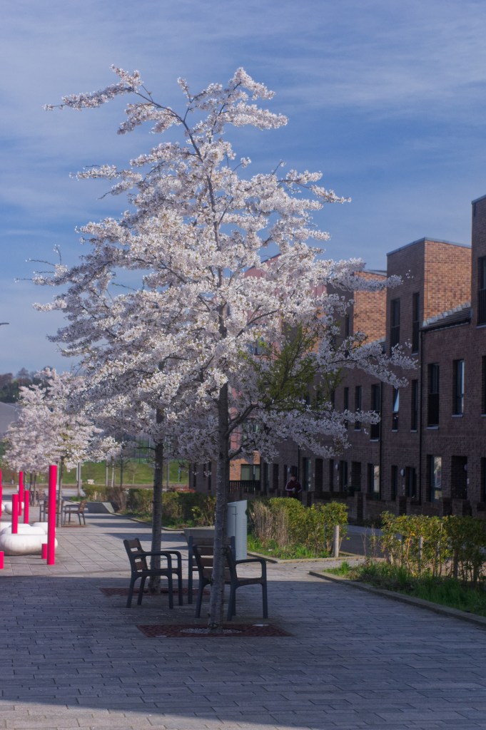 There are some splendid cherry trees atop the hill by the bridge; the sakura season has been thwarted in Glasgow this year, literally nipped in the bud, so some trees in full bloom are a highlight.