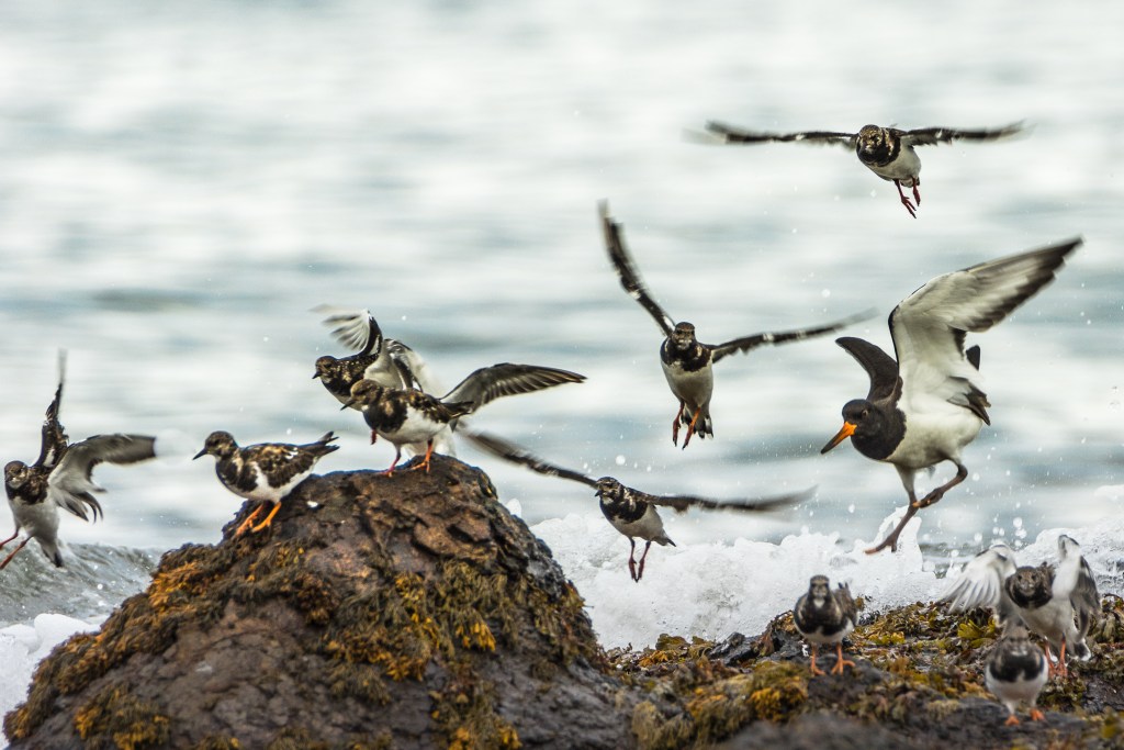 A path rises up the cliff from Cwm Nash and takes you along the top with spectacular views and when we visited, Choughs, corkscrewing and calling up and down the sheer faces, red talons extended and red bills agape. I wish I had tried to photograph them but I was all set up for landscape and thought success most unlikely. The landscape by Nash Point was crossed by old stone walls and studded with gorse bushes, and it resounded with sharp and insistent percussion. Wrens perhaps? Not quite the right sound. And then we were able to see a small bird, and then a pair of them, perching and dipping, then making short swooping flights to another perch nearby. As we advanced, they would work around us and follow us back into their territory. Stonechats of course, unmistakeable with hindsight and a good look at the book.
