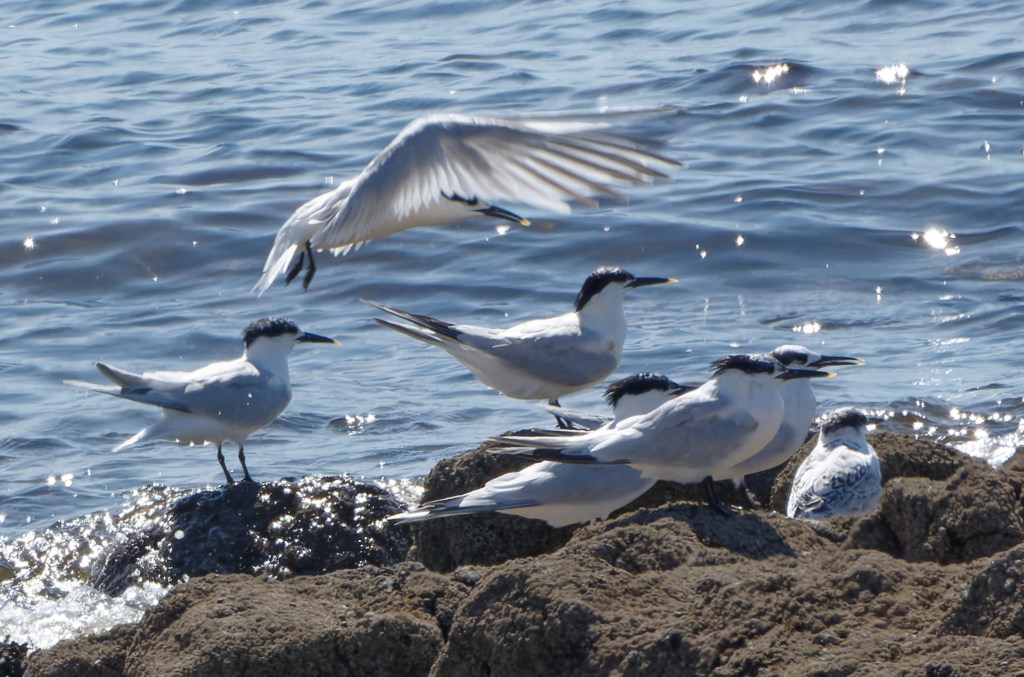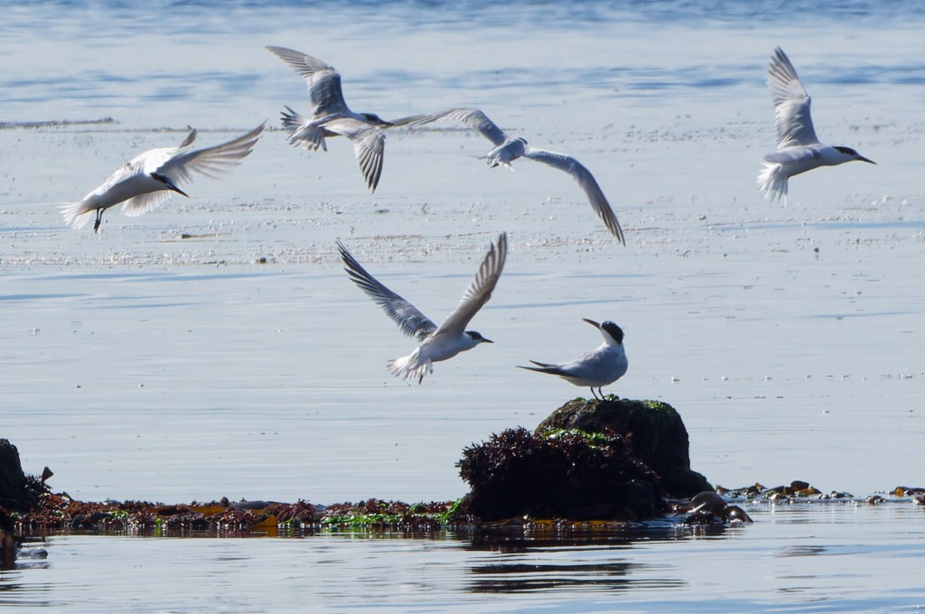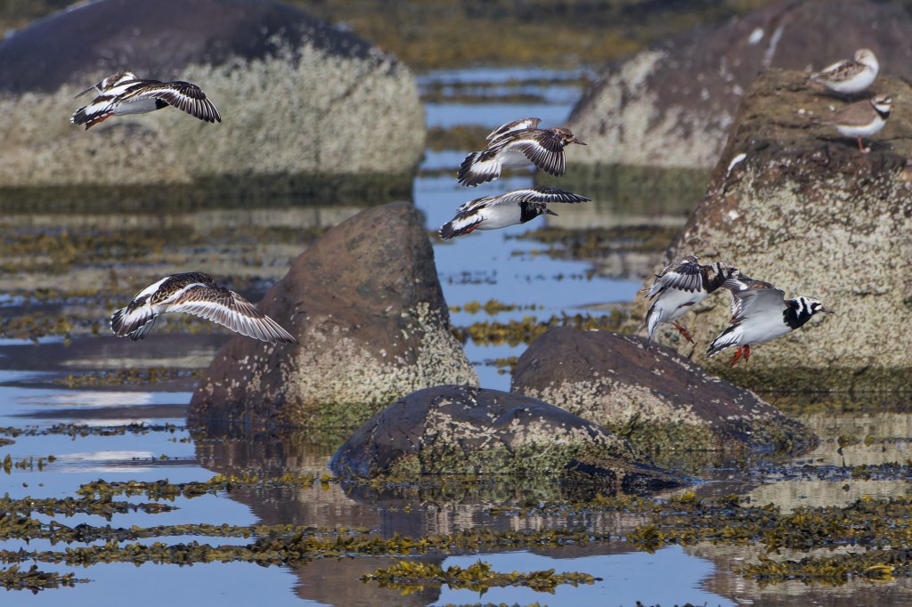 Turnstones have been reliable sightings at Barassie; Backwoodsman was fortunate to find them foraging and then gliding* to a roosting site as the tide rose.