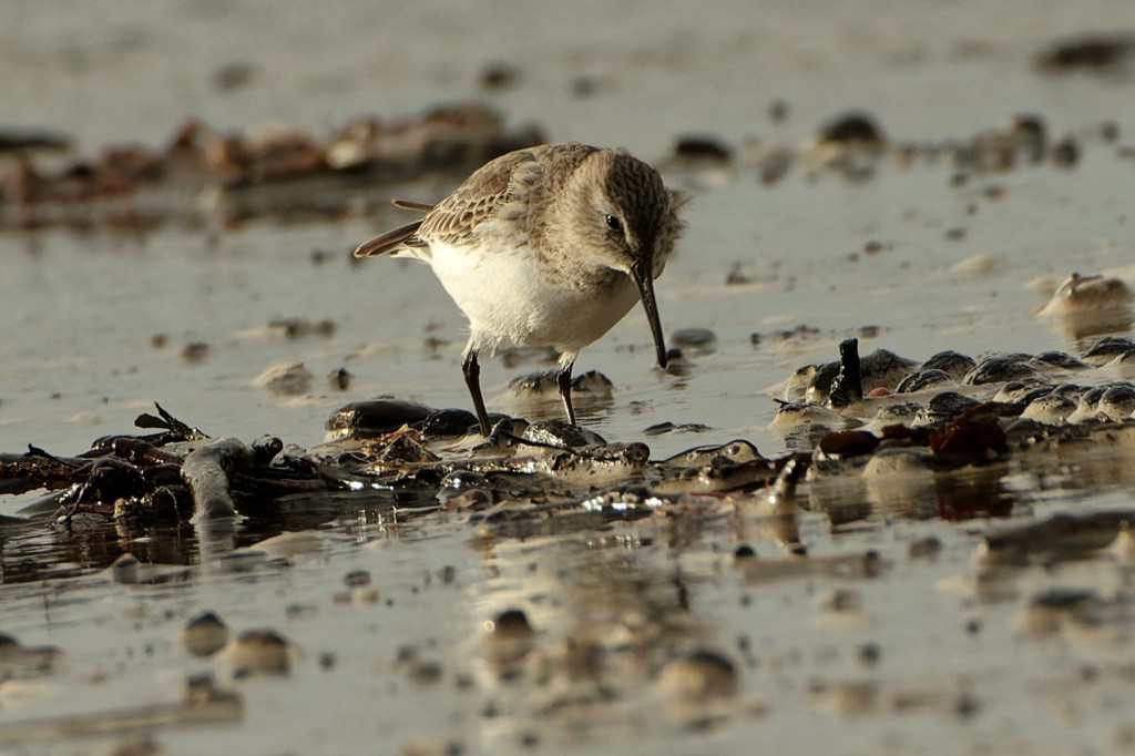 On the last visit to Troon, Backwoodsman failed to find any Dunlin on South Beach. The foreshore had been remodelled by a storm and the kelp was piled wide and deep over the places where Dunlin usually forage. Backwoodsman will have to wait to find numbers of these exquisite birds elsewhere, or perhaps just later in the winter. It has been possible to find the odd one or two; again, Barassie came up with the goods. Such light!