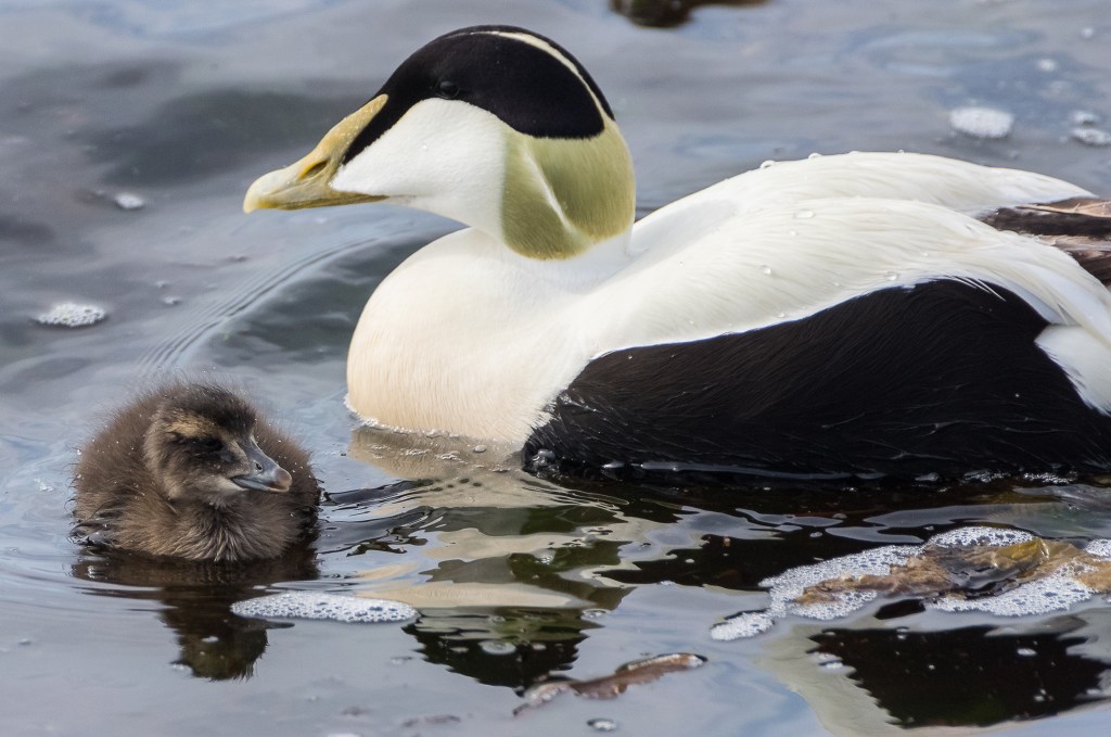 We enjoyed watching the birds for a while before heading north east along the Esplanade into Kirn. Familiar sounds made their way to us across the water, the “yah-roo!”calls of displaying Eiders. We usual hear this call from a distance but it is even more pleasing at close quarters. Backwoodsman had recorded this video at WWT Martin Mere on the recent visit and was wondering if it would ever be useful for anything – here are some loud Eider calls.